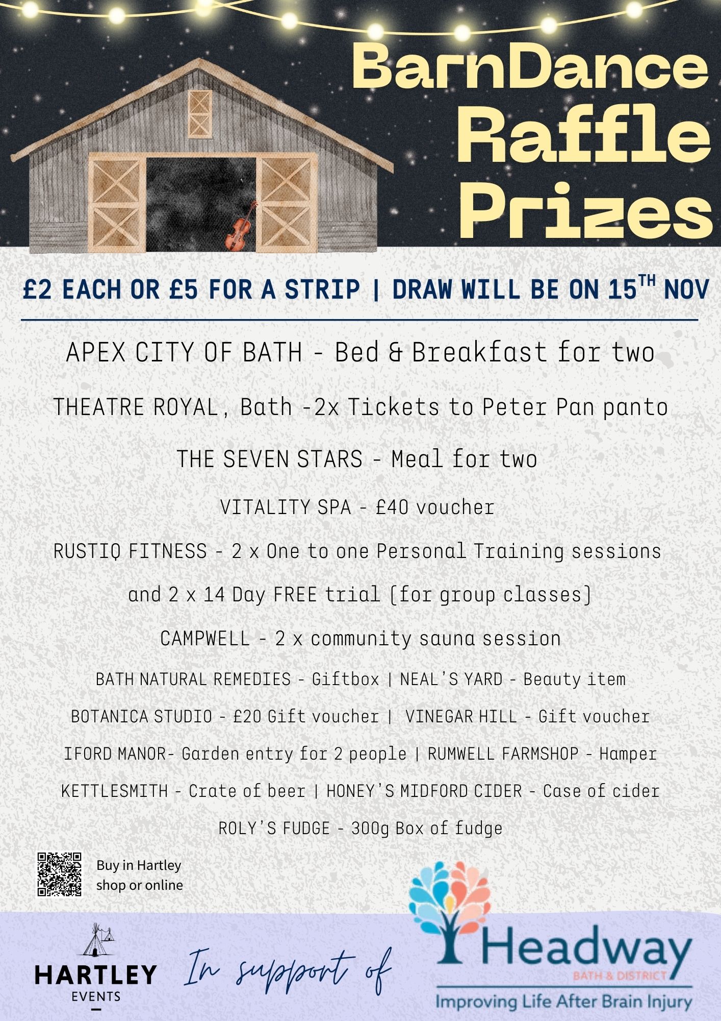 We have a fab selection of raffle prizes to win, so whether you can attend the dance or not, you can still support Headway and be in with a chance of winning something wonderful! Buy a single ticket here for £2 or a strip of 5 for £5.