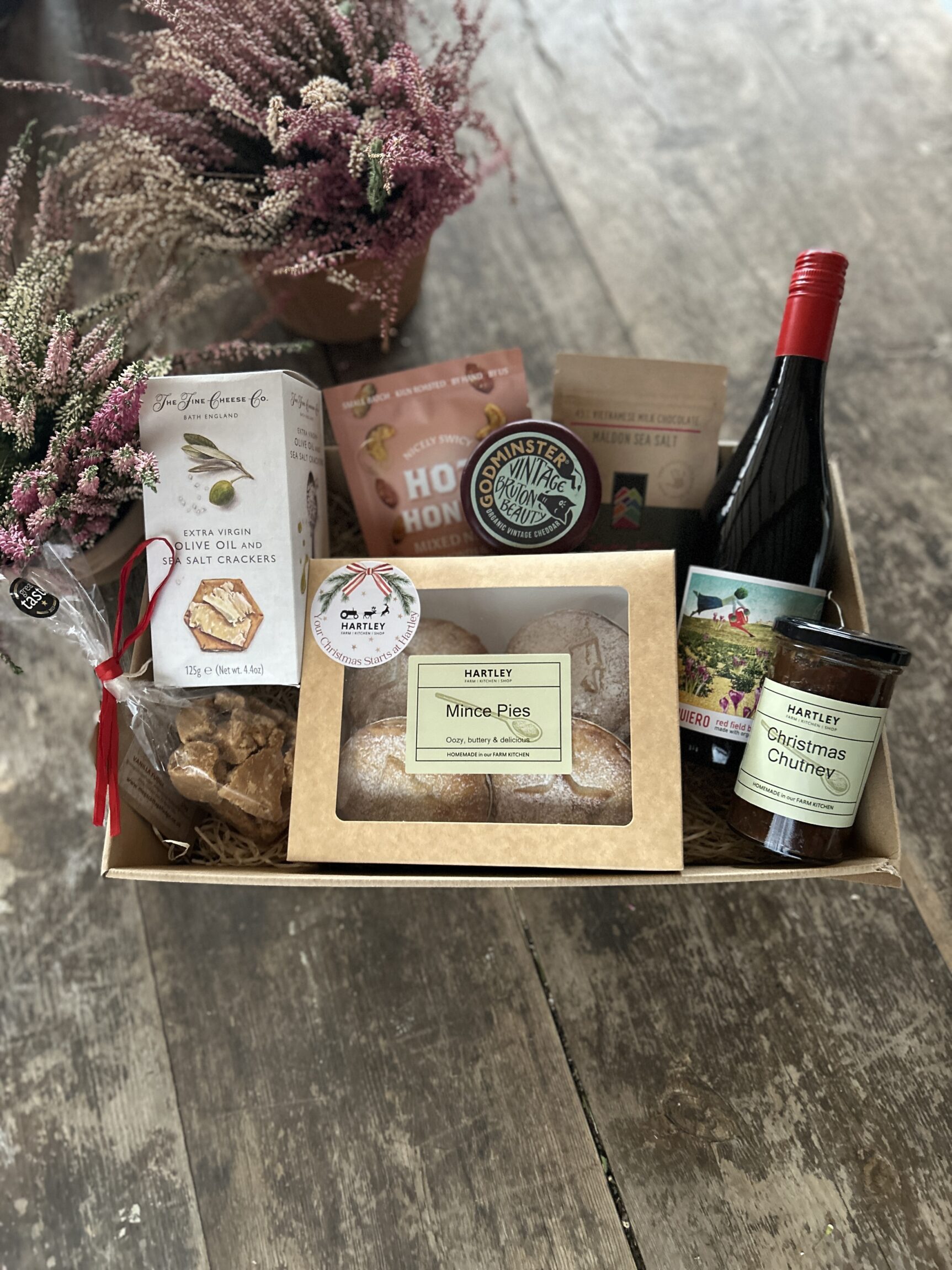 We have hand picked a selection of Hartley Farm favourites to make Christmas extra special, with a focus on the best of local products.  The hamper includes: