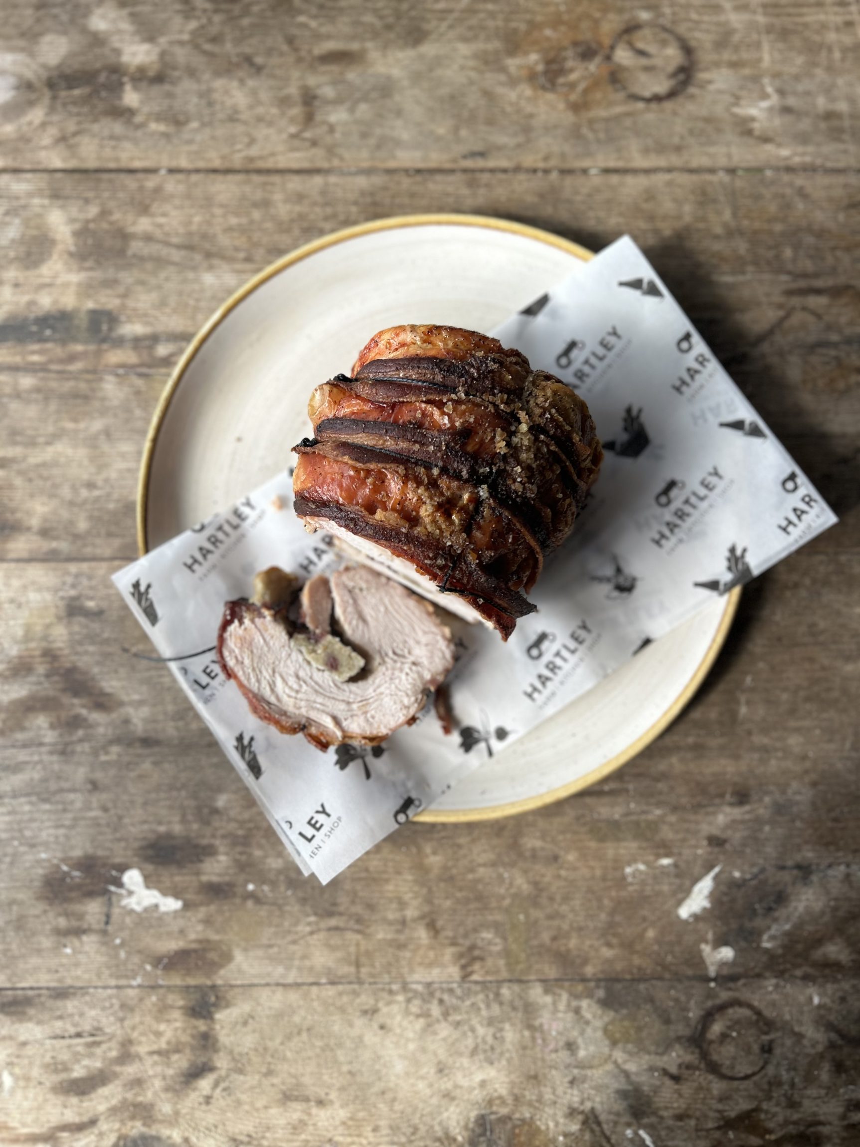 Our boned and rolled turkey breast joints are perfect for those who prefer white meat and are catering for a smaller crowd. It is stuffed with a delicious homemade sage and onion stuffing and covered in streaky bacon and fresh garden Rosemary, before being rolled and tied by our butchers. This stuffed free range turkey breast is a perfect, easy to roast and easy to carve joint.